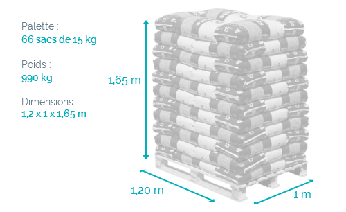 Les TOTAL Pellets Premium sont disposés en palette de 66 sacs résistants de 15kg directement livrés chez vous. Ils disposent de la certification DINplus et subissent des contrôles réguliers afin de vous offrir la meilleure performance tout en protégeant votre installation.